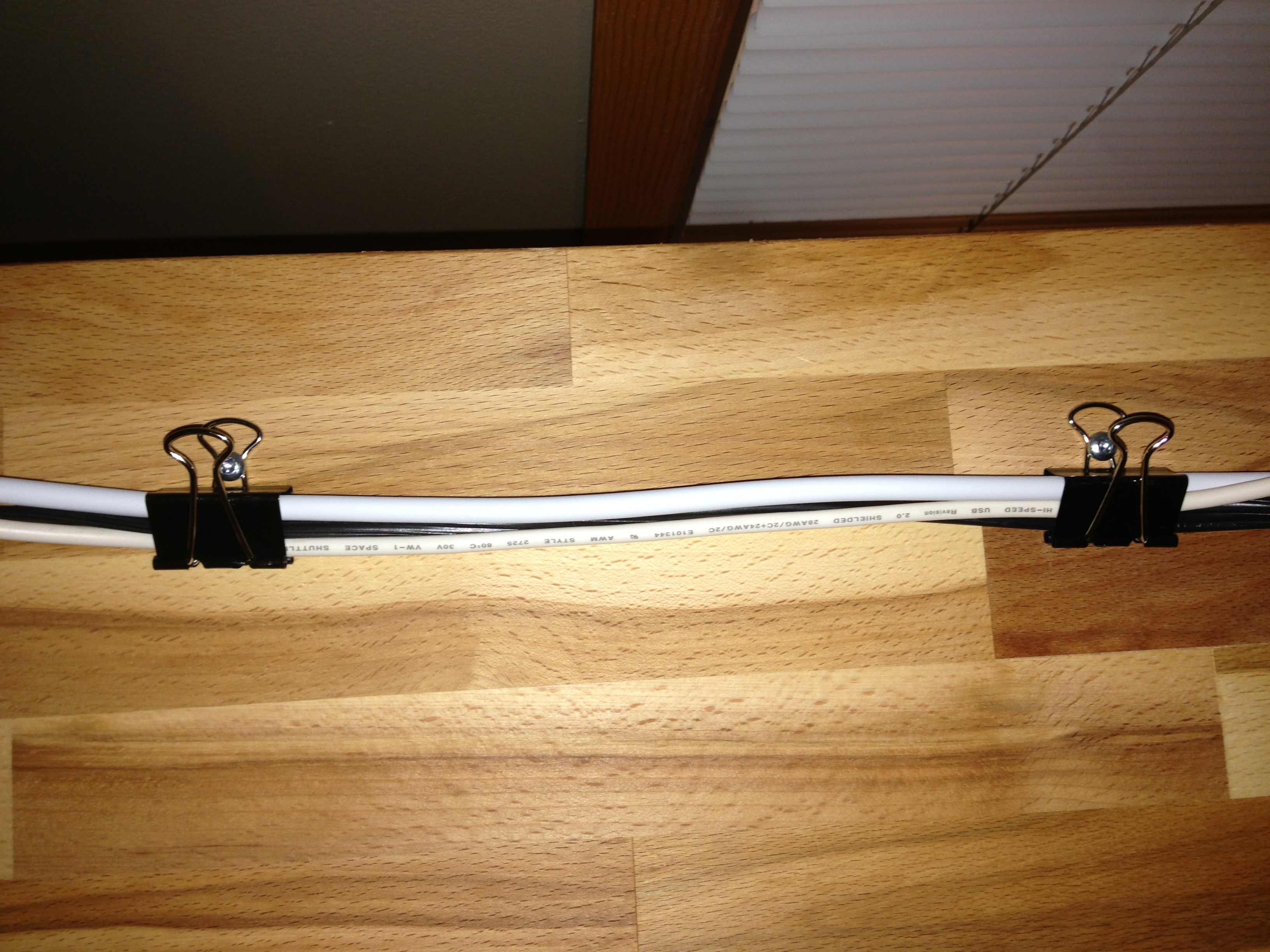 All cables, except the single power cord for the outlet hidden under the desk and the internet cable, are organized under the desk. As can be seen, I simply use medium size binder clip for quick cable arrangements, an idea found browsing the net. Cables can be removed and put back in the clip as easily as documents!